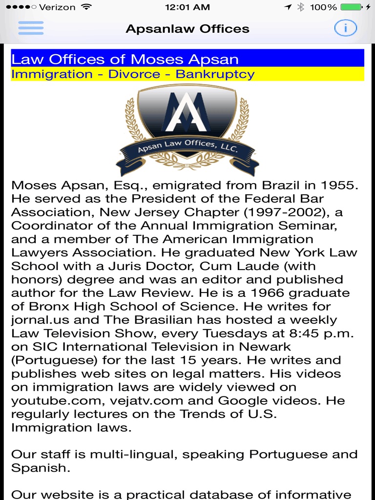 In this App, you will find easy access of everything about immigration, bankruptcy and divorces.