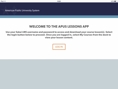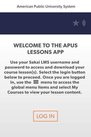 ***NOTE: Students that are enrolled into courses that utilize the APUS Lessons app will be notified within the Sakai LMS. If you do not have a course that utilizes the APUS Lessons app, no course lesson content will be available within the app.***