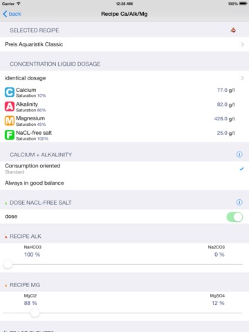 Support for: Aquafair, Aquaforest, Coral-Care, Fauna Marin, MT-Aquaristik, Nyos, H.W. Balling, Preis Aquaristik, A.Glaser, Red Sea, Sangokai, Tropic Marin, Fritz ProAquatics, Two Little Fishies, Kent Marine, Seachem, Brightwell, Continuum Aquatics, ESV and self defined recipes.