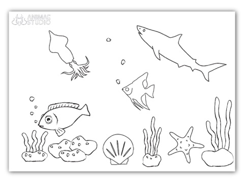 ・CREATE your fishes! Color new fishes and add them to the aquarium.