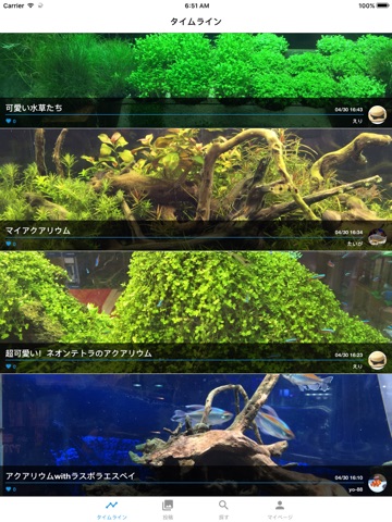お気に入りのアクアリウムを投稿するユーザや友達をフォローしておけば、