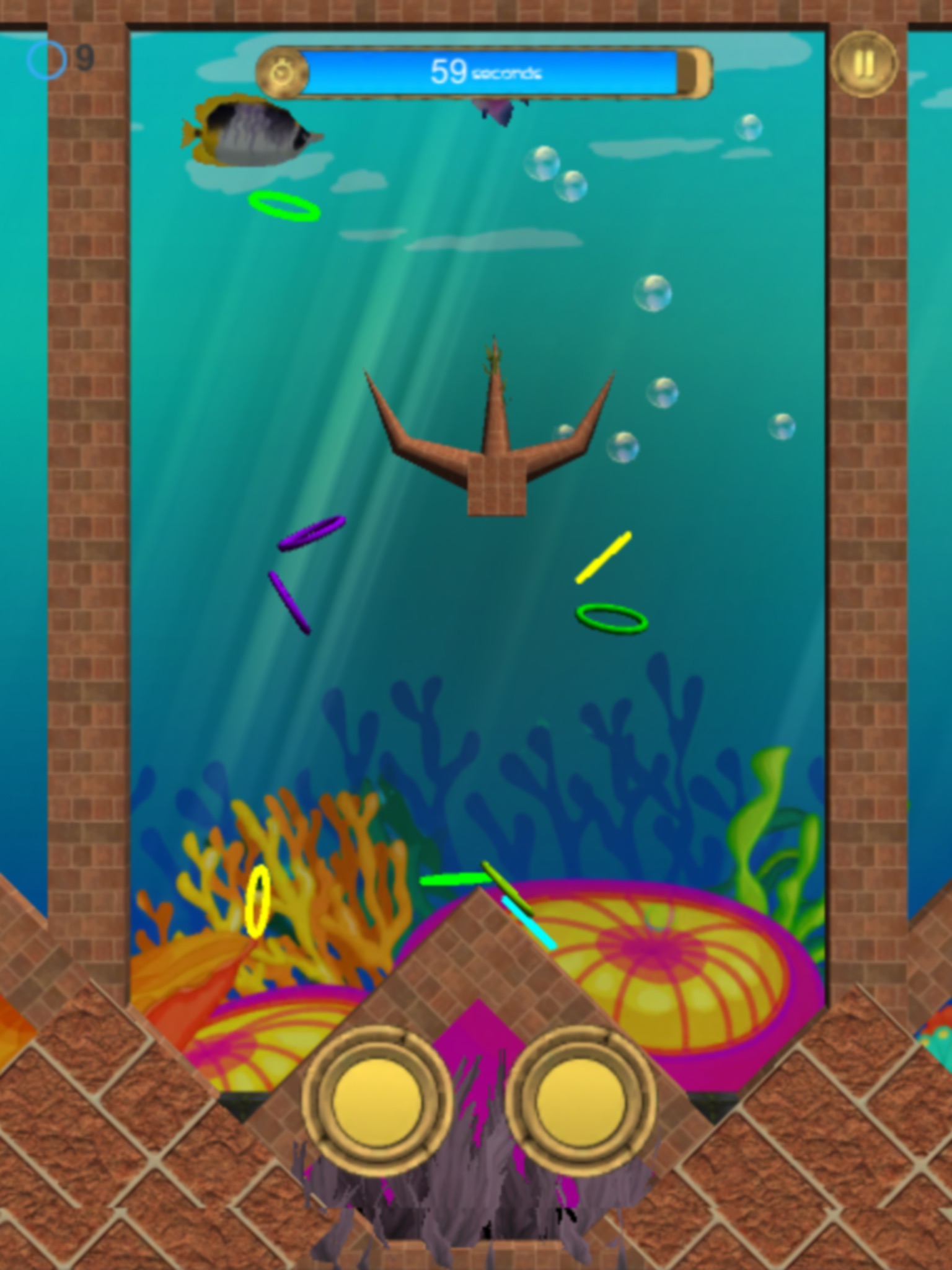 Aqua Rings Toss is unique in its way and has really a great game play, with underwater physics and tilt control system. Beautiful game graphics enhances user experience and makes game-play fun.