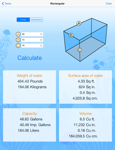 • Use this app to help determine proper stocking, lighting, filtration, and heating requirements for your aquarium. Knowing the capacity of your tank is also very important when you need to figure the dosage of a supplement or medication.