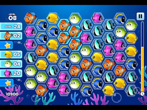 1) Swipe your finger across the screen to match 3 or more of the same fish and clear them.