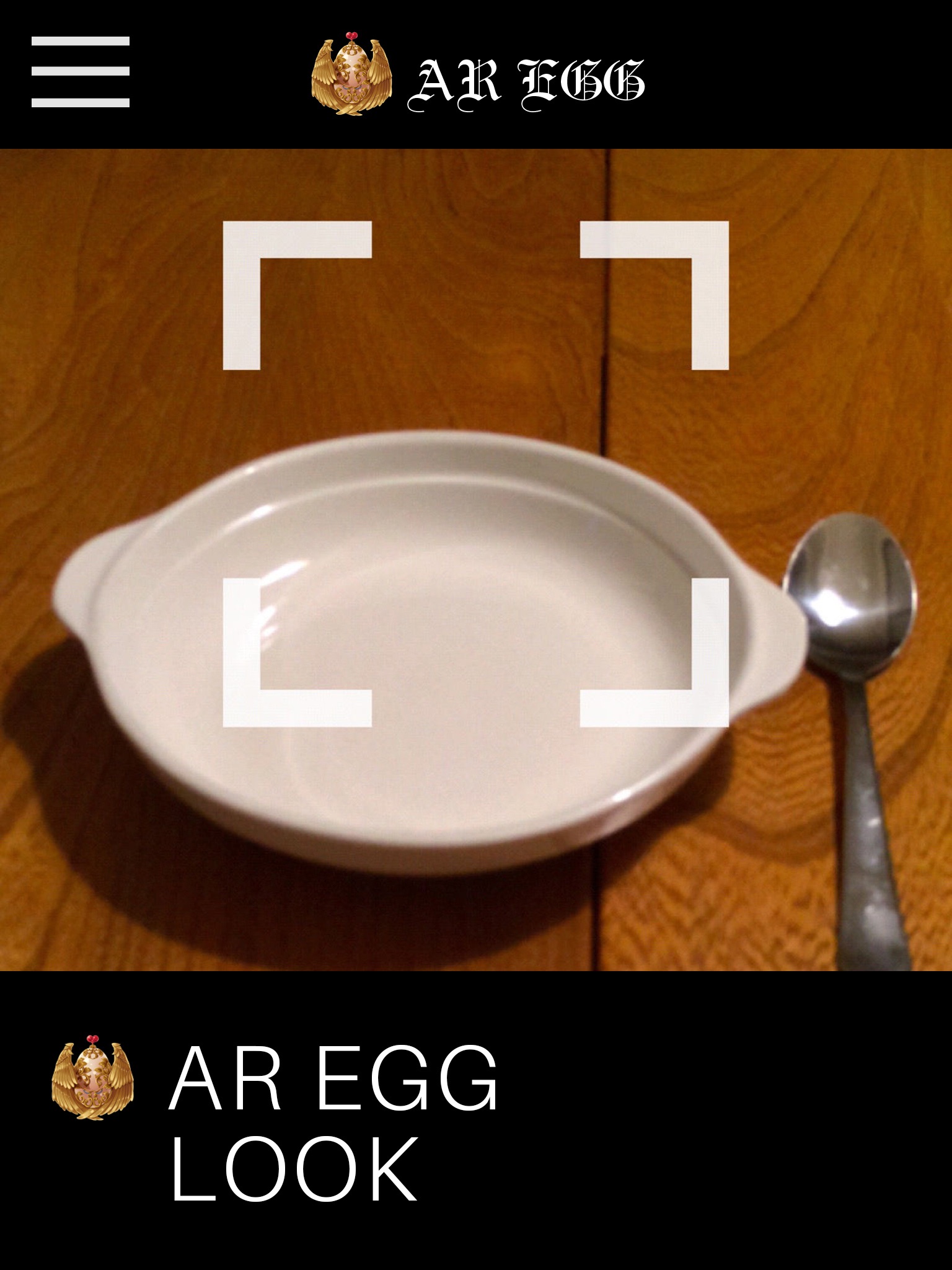「AR EGG」起動後,左上のメニューボタンをタップしてください.
