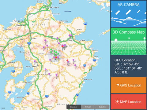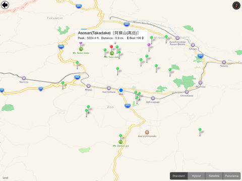 Is free to change the scale so as to pinch your finger, you can see mountain names and other information if you tap the pin.