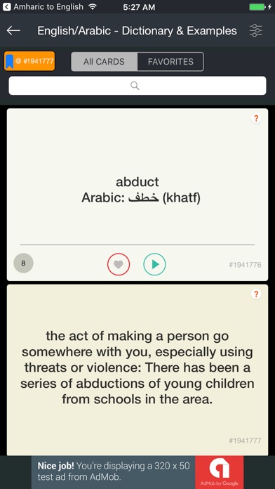 Introducing the Best Arabic to English Offline Dictionary and Translation Flashcard App. This App give you everything you need to learn & translate both English to Arabic or Arabic to English. This free app has over 65,000 words and phrases structured as flashcards and it also integrates the principle of Spaced Repetition to help you retain a large amount of knowledge in your long term memory.