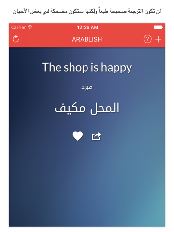 يستخدم هذا التطبيق مفردات حرفية إنجليزية لترجمة عبارات عربية معروفة