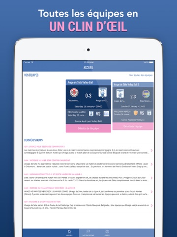 Retrouvez à portée de main toute l’actualité de votre club, ainsi que les résultats de toutes les équipes: