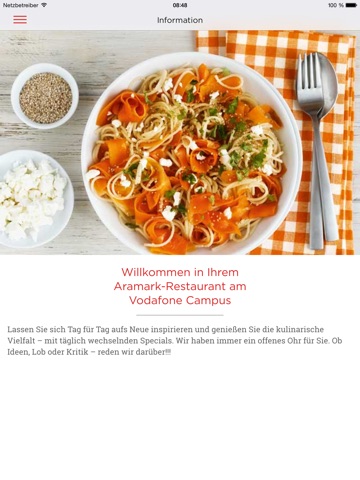 Die Aramark App bietet Ihnen umfassende Informationen zu den Angeboten in teilnehmenden Betriebsrestaurants. Geben Sie einfach die Standortkennung Ihres Betriebsrestaurants ein und Sie erfahren mit wenigen Klicks alles über das Speisenangebot, aktuelle Aktionen und vieles mehr.