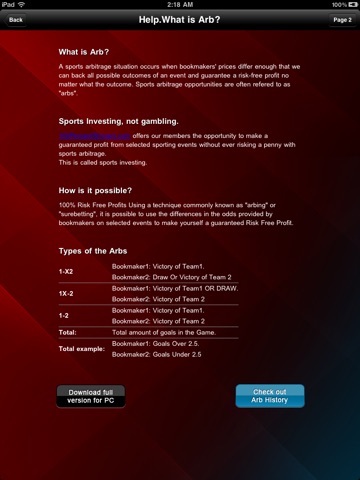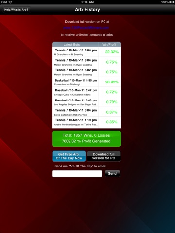 "Arb Of The Day" by 100PercentWinners.com is a premier free iPhone and iPad application which allows you to get profitable sports betting arbs on the fly and generate risk free profit using the "surebetting arbitrage trading technology" called "sports investing"!