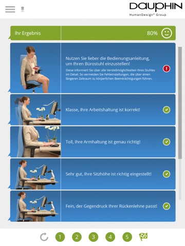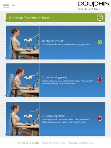 We often do not adjust swivel chairs and desks optimally or arrange their working equipment in a way that quickly results in muscular tension. The app provides a contemporary solution and is available free of charge in the app store for iOS devices. In next to no time, it shows what is most important when adjusting chairs, desks and technical equipment.