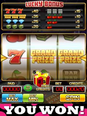 Arcade Lucky Casino Vegas 777 Slots, the ultimate 3 line slots, blackjack, and bonus prize wheel casino game.
