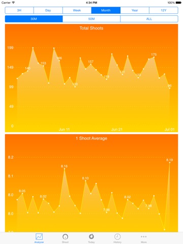 Select the period of time , distance , number of shoots , average score , score ratio , to display the score distribution in the graph