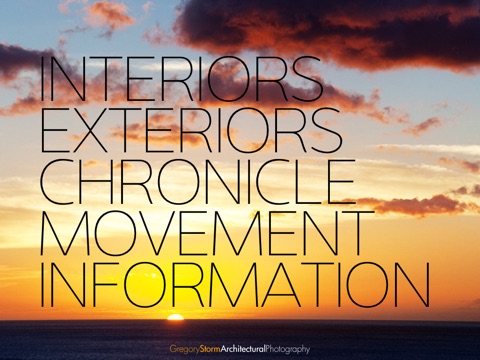 The Architectural Photographer App showcases the professional and personal photographic work of Gregory Storm. Gregory Storm is an award-winning professional photographer specializing in architectural and interior photography. Gregorys cinematic eye and flair for capturing the essence of story gives him a unique creative perspective when photographing the built environment for architects, interior designers, advertising agencies, hotels, resorts, restaurants, travel magazines, manufacturers, developers, and engineering firms.
