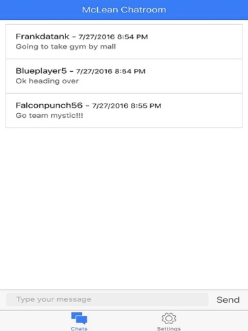 Area Chat - for Team Mystic is a simple location based chat room application that lets you communicate with others nearby without having to sign in to any service or that shares your exact location with others. Just pick a username and begin chatting.