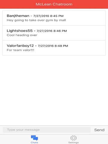 Area Chat -- for Team Valor is a simple location based chat room application that lets you communicate with others nearby without having to sign in to any service or that shares your exact location with others. Just pick a username and begin chatting.