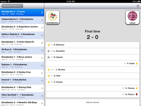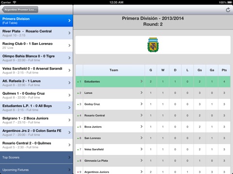 With this app you can also check all the stats for all the teams in the Argentine Premier League competition (Atl. Rafaela, Velez Sarsfield, Estudiantes L.P., Lanus, Rosario Central etc).