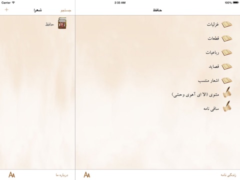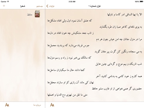 با استفاده از نرم افزار ارغوان شما میتوانید مجموعه متنوعی از شعرهای شاعران معروف فارسی را در دستگاه موبایل ( آیفون یا آیپد ) خود دانلود و نصب نمایید. این نرم افزار شما را قادر میسازد که هر بیت و یا حتی کلمه مورد نظر خود را در تمامی اشعار و یا اشعار خاص یک شاعر جستجو نمایید و از طرفی میتوانید ابیات مورد نظرتان را به لیست اشعار مورد علاقه خود جهت سهولت در دسترسی به آنها اضافه نمایید. در نسخه پیشرفته این نرم افزار امکان داشتن همزمان شاعرهای مختلف در لیست شما وجود دارد شعرایی مانند حافظ - سعدی - مولانا (مولوی) - خیام - عطار - فردوسی - اخوان ثالث و نظامی.