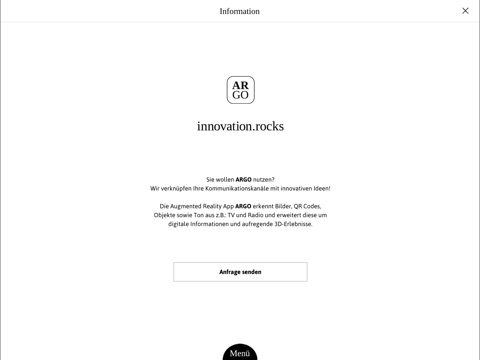 Der Scanner erkennt mühelos versteckte Inhalte in gekennzeichneten Bildern, QR Codes sowie TV- oder Radiospots. Lernen Sie ARGO kennen und erleben Sie Außergewöhnliches: ARGO sieht und hört ganz genau hin. Überall wo Sie das ARGO Icon entdecken, erwachen 3D Objekte zum Leben, warten spannende Informationen, begeistern Videos und interaktive Highlights.