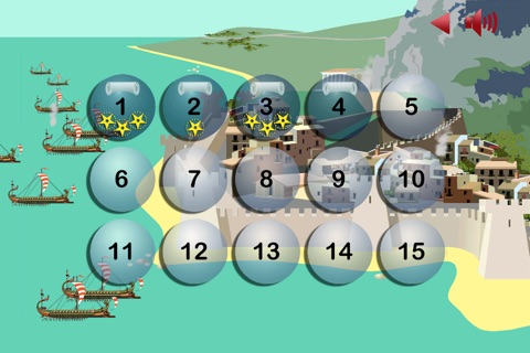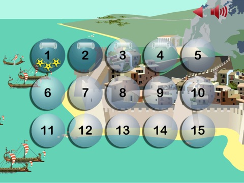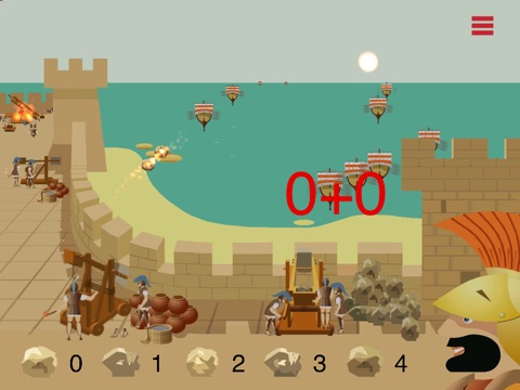 После небольшого объяснения звучат военные трубы или бьют барабаны. Римские корабли появляются на горизонте. Стоя на крепостной стене ребенок слышит перекличку военных расчетов, идут последние приготовления к битве и вот начинается канонада. Несколько катапультных расчетов ведут обстрел римских кораблей а те в ответ швыряют горящие ядра в защитников города. По всюду слышны звуки боевых барабанов, заряжаемых орудий и удары вражеских камней в крепостные стены города. Командир выкрикивает примеры, которые ребенок должен решить и указать камень с правильным результатом. Именно этот булыжник и швырнет его катапульта в один из вражеских кораблей. Если решение правильное – камень попадает в цель и корабль тонет в дыму и пламени. В противном случае командир возмущается, а камень летит мимо и падает с брызгами в воду недалеко от намеченной цели.