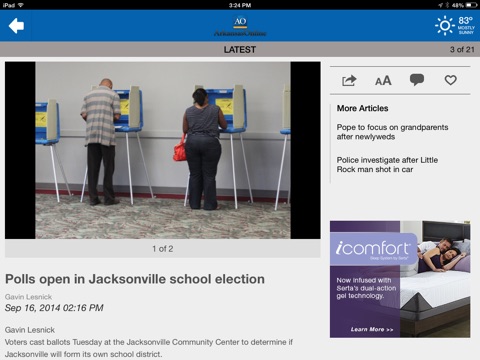Now you can be just one click away from all of the great content provided by Arkansas Online and the Arkansas Democrat-Gazette with our new app. Get the latest updates from Little Rock to all four corners of Arkansas. Arkansas Online is the top destination for news and information in the state of Arkansas. Published in association with the Arkansas Democrat-Gazette, Arkansas Online provides breaking news, weather, sports, entertainment and business coverage for the Natural State. The Arkansas Online application includes: