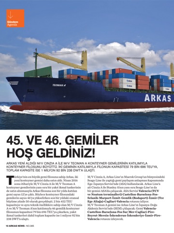 Arkas Holding ve şirketlerinin faaliyetleri, kurumsal haberleri, sosyal sorumluluk çalışmaları, faaliyet gösterdiği sektörlere dair en yeni çalışmalarının yer aldığı kurumsal dergisi Arkas Newsu, ücretsiz olarak indirebileceğiniz bu uygulamayı kullanarak okuyabilirsiniz. Bu uygulamayla, yenilenen ve taptaze, muhteşem içeriklerle bezenen Arkas News dergisinin tüm sayılarını telefonunuzda ya da tabletinizde taşıyabilir, en yeni sayıyı çıkar çıkmaz indirip okumaya başlayabilirsiniz.