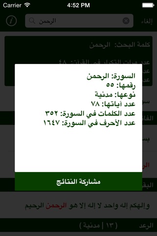 ١. عدد مرات تكرار كلمة البحث في القرآن