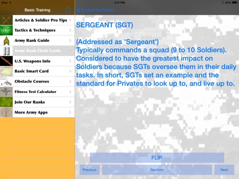 Custom Flashcard System - Your key to mastering the mountain of knowledge thats coming. Create unlimited study decks for everything from Army Values to rank recognition, weapons safety to warrior tasks. Study smart, not just hard.