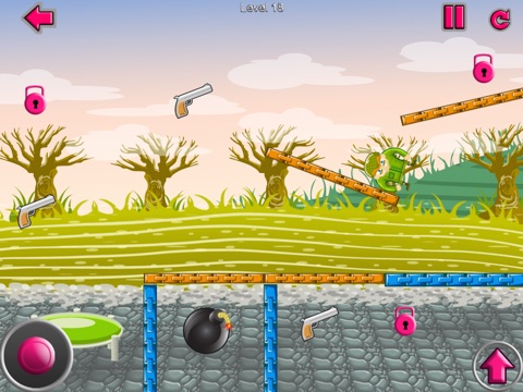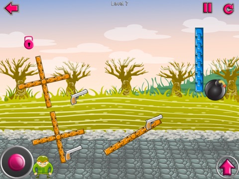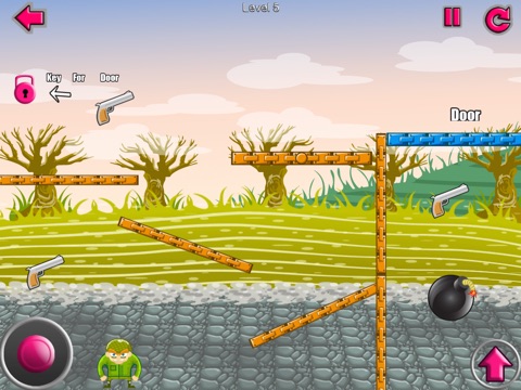 By jumping and moving with the joy stick, bring the soldier to the tactically placed bomb at each level.