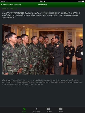 ช่องทางใหม่อันทันสมัยของกองทัพบก ในการสื่อสารกับประชาชนและภายในกองทัพด้วยกัน ภายในแอพประกอบด้วยเนื้อหามากมาย ไม่ว่าจะเป็น ข่าวประจำวัน ข่าวประชาสัมพันธ์กองทัพบก ข่าวย้อนหลัง ภาพกิจกรรมต่างๆ คำสัมภาษณ์ของผู้บัญชาการทหารบก วิดีทัศน์ต่างๆ ภาพยนตร์ เพลง และสารคดีของกองทัพ ซึ่งทุกคนจะใกล้ชิดกับกองทัพมากขึ้นกว่าเดิม