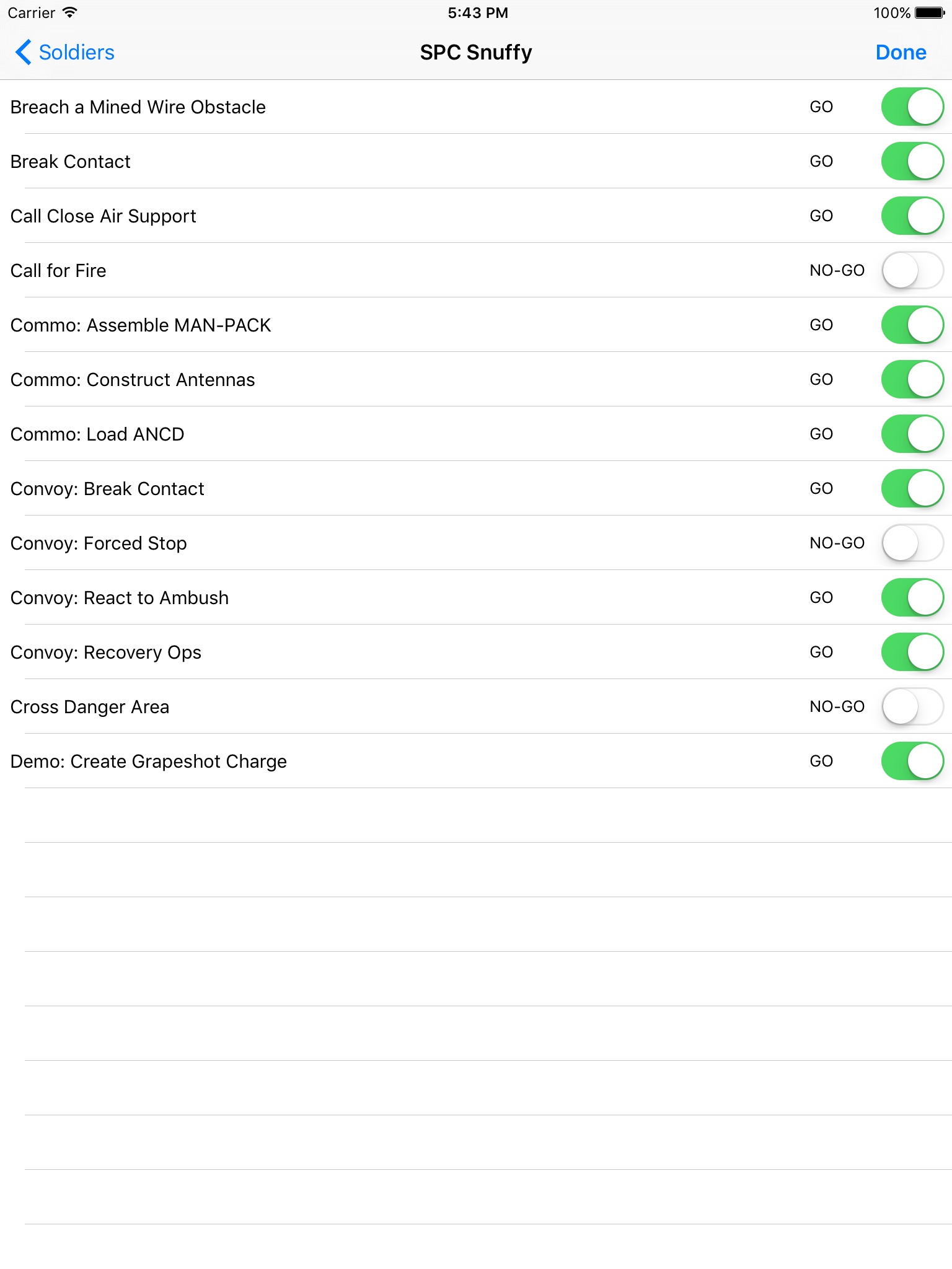 The big feature: Train ranger skills to standard! Record training, store and email PDF records with a GO/No-GO format with notes.