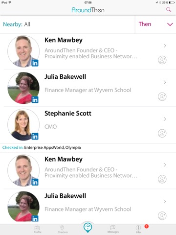 AroundThen makes business networking easier - allowing you to view, message and connect with nearby users on LinkedIn and Enterprise Social Networks, including Microsoft Office 365, Yammer and Salesforce Chatter.