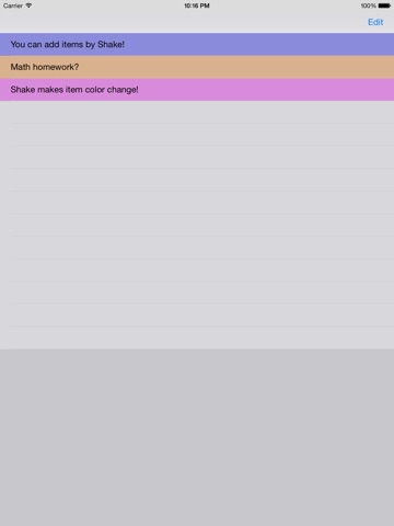 - adding items by shake gesture shortcut
