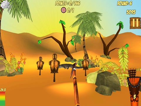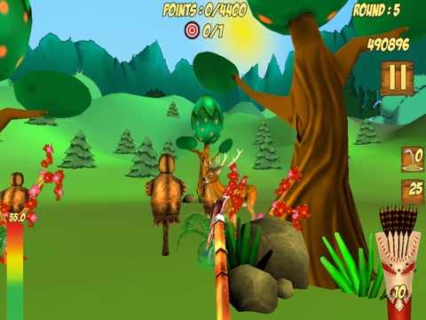 In Arrow Flicks other game modes, arrows are strategically flung at standing targets (make sure you hit all three), roving animals and dangling fruit. Gameplay unfolds in one of two landscapes, savanna or forest. The savanna is populated by lions, crocodiles and rhinos, while the forest is home to deer, bears and rabbits. You are awarded points and special achievements (there are 93 of them) for hits, kill shots, bull’s eyes, headshots and trick shots. Ace your marks and you may be deemed the next Robin Hood.