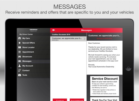 Make your vehicle ownership experience easy with the free Arrowhead Cadillac mobile app. This feature-rich app allows you to get the most out of your vehicle by helping you to maintain and organize essential car details like service history, as well as save money with mobile offers and coupons!