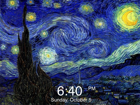 Art Clock + has more than 400 different amazing paintings and pictures to enjoy. Use it as a clock with beautiful backgrounds with the option of a slideshow feature, or just save your favorite backgrounds to your photos and use them as wallpapers.