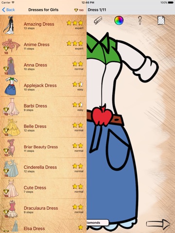 «Art of Draw Dresses for Princess» will become an everyday activity for all family. You will find clear lessons, instructions and tools. 3 levels of complexity for each sketch will also help to develop your artistic skills!