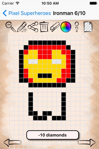 «Learn to Draw Pixel Superheroes» will become an everyday activity for all family. Learn how to draw Superheroes with no difference of your drawing level. Discover drawing in a more creative and fun way. You will find clear lessons, instructions and tools. 3 levels of complexity for each sketch will also help to develop your artistic skills!