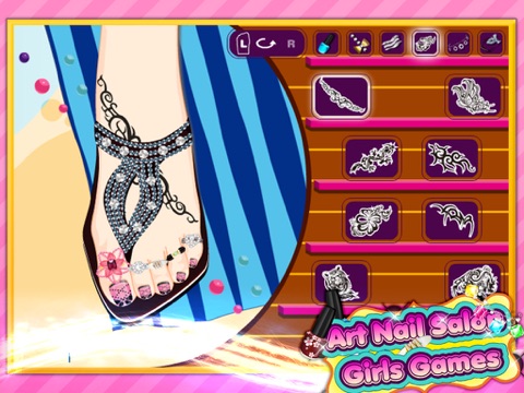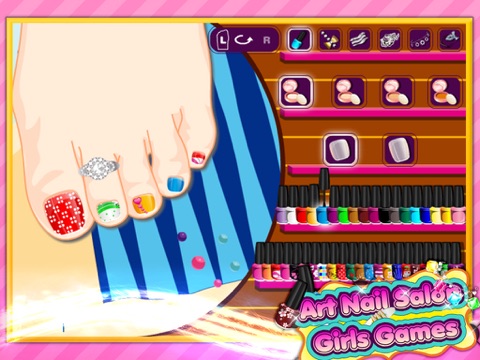 In this game you can free your imagination, choose beautiful nail polish, variety of colors and patterns, choose beautiful bracelet, ring for her.