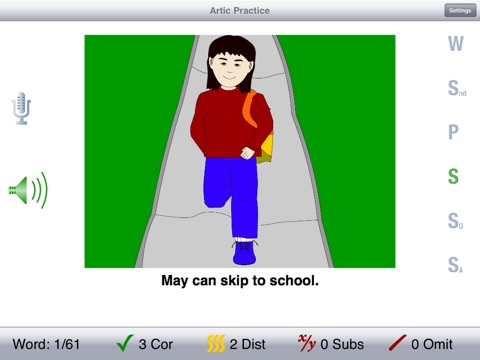 This app has 536 colorful drawings to hold children’s interest as they practice their good speech. Focus on Initial, Medial, and Consonant phonemes along with Consonant Clusters and some Vowels + R. Each picture has a button with the word, the sounds in the word, a phrase and sentence containing the word. And a question and answer to stimulate discussion using the picture as a starting point.
