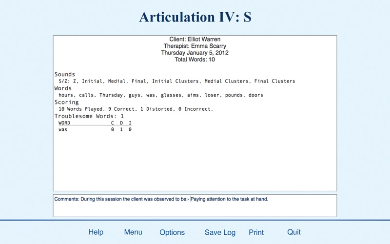 Speech Pathologists will appreciate the ability focus the session on one of the most common articulation targets in the Initial, Medial, and Final positions and Consonant Clusters.