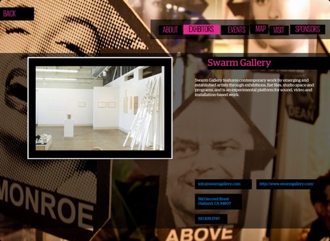 •View and contact exhibitor galleries via email, phone or visit their site -- all from within the app