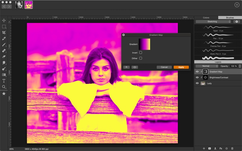 • 15 adjustments available as non-destructive layer or simple adjustment: Brightness/Contrast, Levels, Curves, Exposure/Gamma, Shadows/Highlights, Vibrance, Hue/Saturation, Color Balance, Temperature/Tint, Black and White, Gradient Map and more
