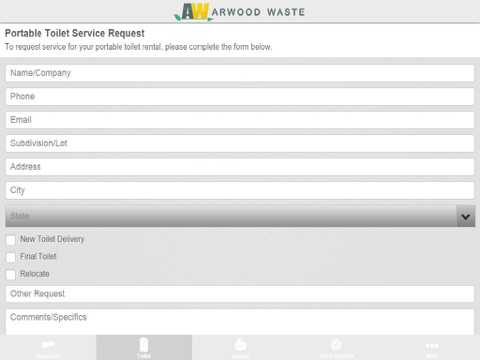 Arwood Waste is your source for Dumpsters, Portable Toilets and Waste Services. Our free app allows you to send us easy, immediate service requests and place orders for all your waste rental needs.