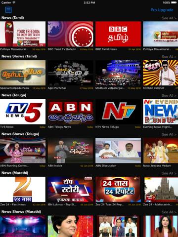 Watch recent News and Shows in Hindi, Tamil, Telugu and Marathi. Zee News, ABP News, NDTV, News 24, BBC, Times Now, Tez News, TV9, Newsfirst Sirasa/Shakti/MTV, Dinamalar Daily, Swarnavahini, NTV Telugu and many more.