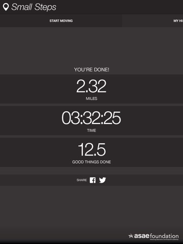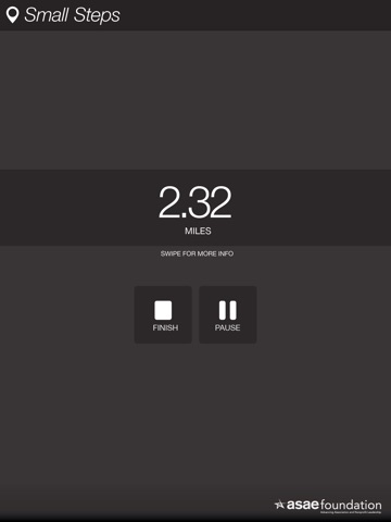 The ASAE Foundation Small steps app showcases that together individually small acts can move the association community forward. The app allows attendees of ASAE events to track the mileage they walk, run, or ride through the city, the convention center, or at evening events so they can track their total mileage for the day. Each mile logged benefits the ASAE Foundations thanks to the support of our sponsors. The ASAE Foundation conducts key research, fosters community and advances association leadership to help association professionals manages the challenges and opportunities of today—and the future—one step at a time.