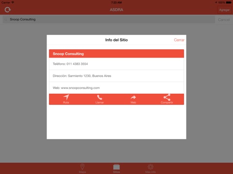 ASDRA Finder es la primera aplicación para celulares que permite encontrar lugares donde se realicen actividades educativas, terapéuticas, recreativas, deportivas o de cualquier tipo, para personas con discapacidad intelectual. La Asociación Síndrome de Down de la República Argentina (ASDRA) junto a la consultora informática Snoop Consulting analizaron esta necesidad de las familias de personas con discapacidad intelectual y crearon la aplicación con su plataforma para desarrollo de aplicaciones móviles empresariales. Además, los usuarios pueden sumar sus datos de más entidades.