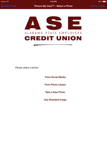 Personalize your card from your iPhone, iPod, and iPad using Picture My Card™ Mobile from ASE Credit Union.