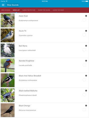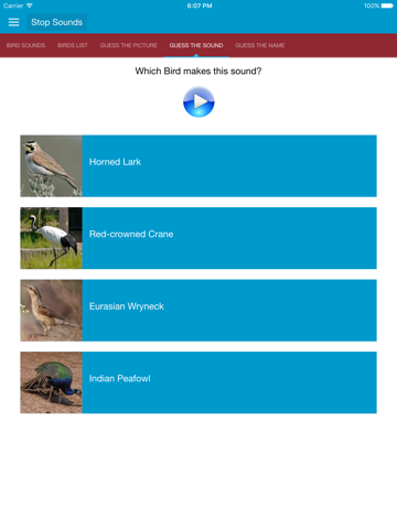 Mini games are also included helping you to learn the different birds found in this app: Guess the Picture, Guess the Sound and Guess the Name.